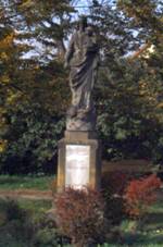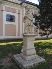sv.Metoděje před vchodem pořízena k tisíciletému výročí jejich mise 1863. Socha sv. Jana Nepomuckého z roku 1728 u