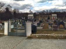 s oblouky, bez nápisů, jednoduše zdoben květinami. Kříž je nově vztyčen, na