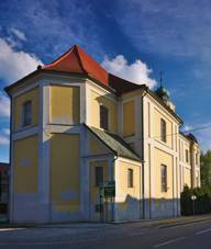 u Prostějova (Prödlitz) Připojeny: Sněhotice Kostel Povýšení sv.Kříže Zdroj 2) 1707-26, oprava po 1948 Fara … Socha