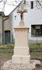 blesk. Z kříže se dochovala jen tabulka s nápisem, která je dnes součástí