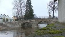 C) E) se sochou sv. Jana Nepomuckého z roku 1712, prošel