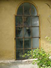 Socha V zaskleném výklenku kostela