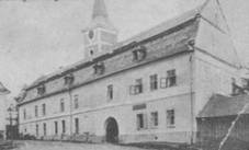 C) 1,6 km jižně od obce Hostinec Na malém náměstí, s mansardovou střechou,