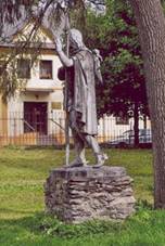 století. Litinová socha umístěná na kamenném podstavci byla vyrobena v