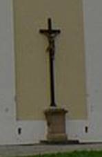 století neznámým autorem. Kříž zdobí zrestaurované sošky andělů.