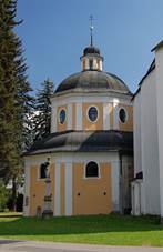 Kaple sv.Kříže B) C) 1715 součást lázní a kostela, Je
