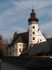zámek (dostavěný roku 1589, rozšířil lázně stavbou další budovy (1592), dal
