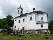 jednolodní kostel z let 1714-1721 s freskami z roku 1757;