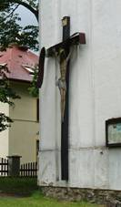 Dřevěný kříž Na průčelí kostela