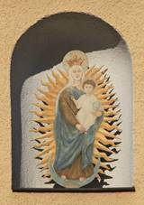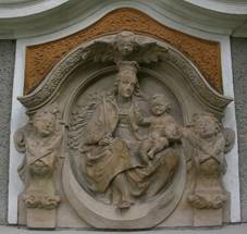 P.Marie Frýdecké Na plechu, ve výklenku kostela