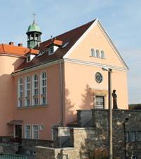 společenskou místnost. V západní části domu se nachází kaple Panny Marie