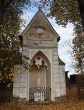 Vedle kostela. Dva náhrobky od Františka Bílka. Kaplička P.Marie