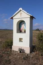 2024 Kaplička U č.p.6 Socha sv. Jana Nepomuckého U rybníka východně od vsi. Kol.1824, KP Kamenný kříž U silnice na Bítovánky.