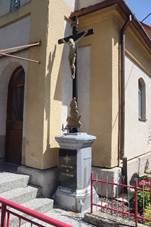 se sochou P.Marie Lurdské Kamenný kříž Před OÚ, 1970