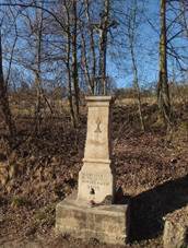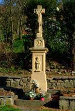 originál přesunut do vsi Reliéf sv.Huberta 2015 přemístěna na náves Kamenný kříž Proti č.p.58 Kamenný kříž V části Vršava