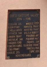 kapličce Pamětní deska padlým 1914-18 Na budově OÚ Pamětní deska padlým 1938-45 Na budově OÚ Škola …