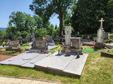 2.pol.13.stol. s gotickou a barokní přestavbou. Hřbitov U kostela Kaplička sv.Rodiny U silnice do Sazovic, kol.1800 Socha sv.Vendelína U hřbitova, 18.stol. Kamenný kříž Za hřbitovem, 1746 Kamenný kříž Na jižním okraji vsi Kamenný kříž U cesty západně od hřbitova, 1855, opraven 1862 Dřevěný kříž … Svatý obrázek Na severním okraji území vsi Busta T.G.Masaryka Na návsi |