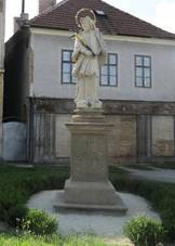 Socha Zdroj C) Ve výklenku na průčelí kostela