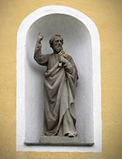 Hřbitov U kostela Evangelický hřbitov Jižně od hřbitova Socha P.Marie Pod kostelem Socha sv.Petra Ve výklenku na průčelí kostela Socha sv.Pavla Ve výklenku na průčelí kostela Kamenný kříž Na hřbitově, centrální Kamenný kříž U kostela Kamenný kříž U polní cesty od hřbitovů východně od