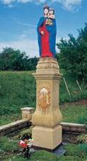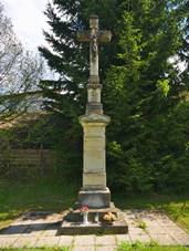 v blízkosti kostela z r.1874. Kamenný kříž Zdroj A) při silnici do Valašských Příkaz z