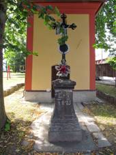 Na návsi před kaplí, 1875 Kamenný kříž Zdroj C)