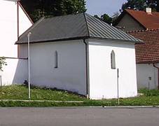Původní kostnice, stojící v ohradní zdi za presbytářem kostela,