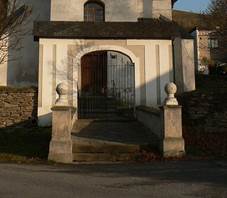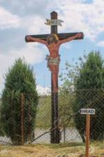 výmalba Vstupní brána u kostela z konce 18. Století Kamenný kříž U kostela klasicistní kamenická práce