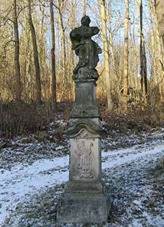 Barokní s reliéfem sv.Valentýna na podstavci. Nápis: Franca-Anton 1717. U