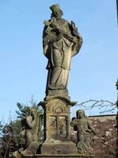kostelní cesty v blízkosti fary č.p. 76, KP [Socha Nejsv.Trojce] V zahradě č.p.45, 1900, ukradena 1997 Socha sv.Jana Nepomuckého U č.p. 9. 1871. Se sochami andílků KP Kamenný kříž U školy, bez vrcholového kříže Kamenný kříž 1761 od Václava Hofmanna. V nice opěrné hřbitovní zdi Kamenný kříž U č.p.66, V německých zdrojích označen jako „Wenzlsäffls
