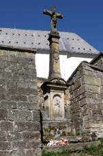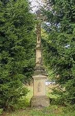 Kamenný kříž 1871, u cesty k Hoštejnu, severně od vsi, s reliéfy sv.Aloise, sv.Jana Nepomuckého