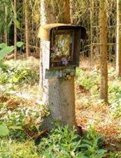 kraji lesa u lesní cesty na Rájec Památník K.H.Borovského Vedle