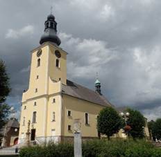 kol.1208, renesančně přestavěný, do dnešní podoby upravený v 18. století; Fara U kostela, č.p.22, 1781 Synagoga První synagogou byla roubená budova