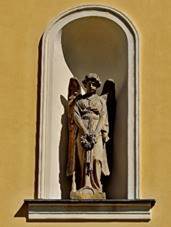 Vítězného V parčíku mezi Moravičanskou a Sokolskou ulicí Socha Anděla Ve výklenku kostela Socha Anděla Ve výklenku kostela Kamenný kříž Před kostelem, Joh.Pudil