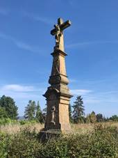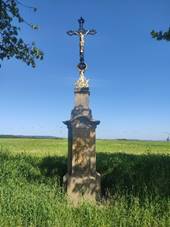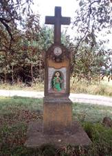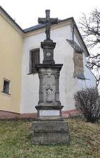 obnoven 1860, s reliéfem P.Marie Bolestné Kamenný kříž Ul.U