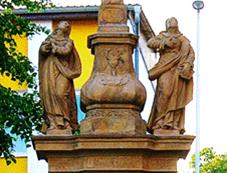 Maří Magdaleny. Na podstavci jsou reliéfy patronů země české sv.Prokopa,
