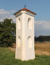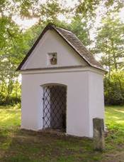 poloviny 19. století, navazující na starší základ Kaple Nejsv. Trojice Jižně od vsi, drobná empírová stavba