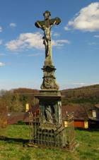 na Vranovou Kamenný kříž U kapličky, s reliéfem P.Marie