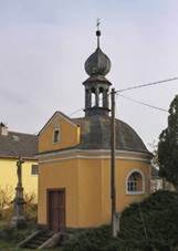 Před kaplí, s reliéfem P.Marie Bolestné, sv.Jana