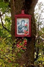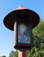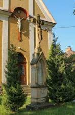 P.Marie s Jeíkem a Piety na čele podstavce Dřevěný kří V poli severně od hřbitova Dřevěný kří Nad vchodem do kaple Obrázek Nejsv.Trojice Na okraji vsi za č.p.84 Obrázek P.Marie U cesty pod nadhlednou
