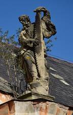 Na průčelí kostela vedle věže Socha sv.Prokopa