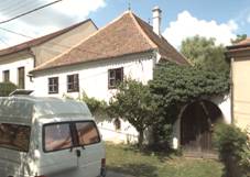 trojúhelníkovým ořímsovaným štítem a ukončená cihlovou sedlovou střechou.