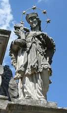 Šebestiána Na postamentu sloupu Socha P.Marie Šimperské Přemístěna ke kostelu 1910 Socha sv. Jana Nepomuckého Barokní