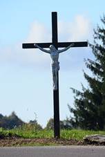 toskánském sloupu v masivní hranolové podložce byl osazen kříž ze silného