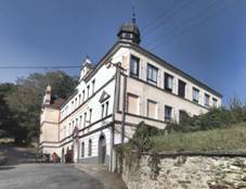 na Lesnou Keramická továrna č.p.91. Střed obce, při silnici vedoucí k zámku Lesní chrám Marie Schutz