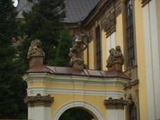 (Bazilika minor). Na fasádě baziliky jsou barokní